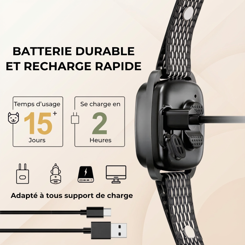 Non. Contrairement aux colliers électriques interdits ou douloureux, notre collier anti-aboiement sans choc utilise uniquement des vibrations douces, 100% sûres pour la santé et le bien-être de votre chien, qu’il soit petit ou grand.